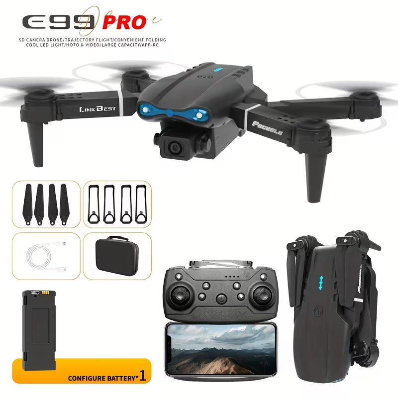 Dron E99 Pro última generación. Grabación autónoma seguimiento a personas. Control opcional por app desde dispositivo móvil.